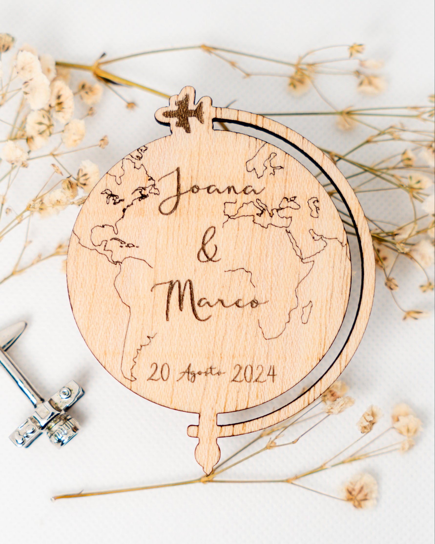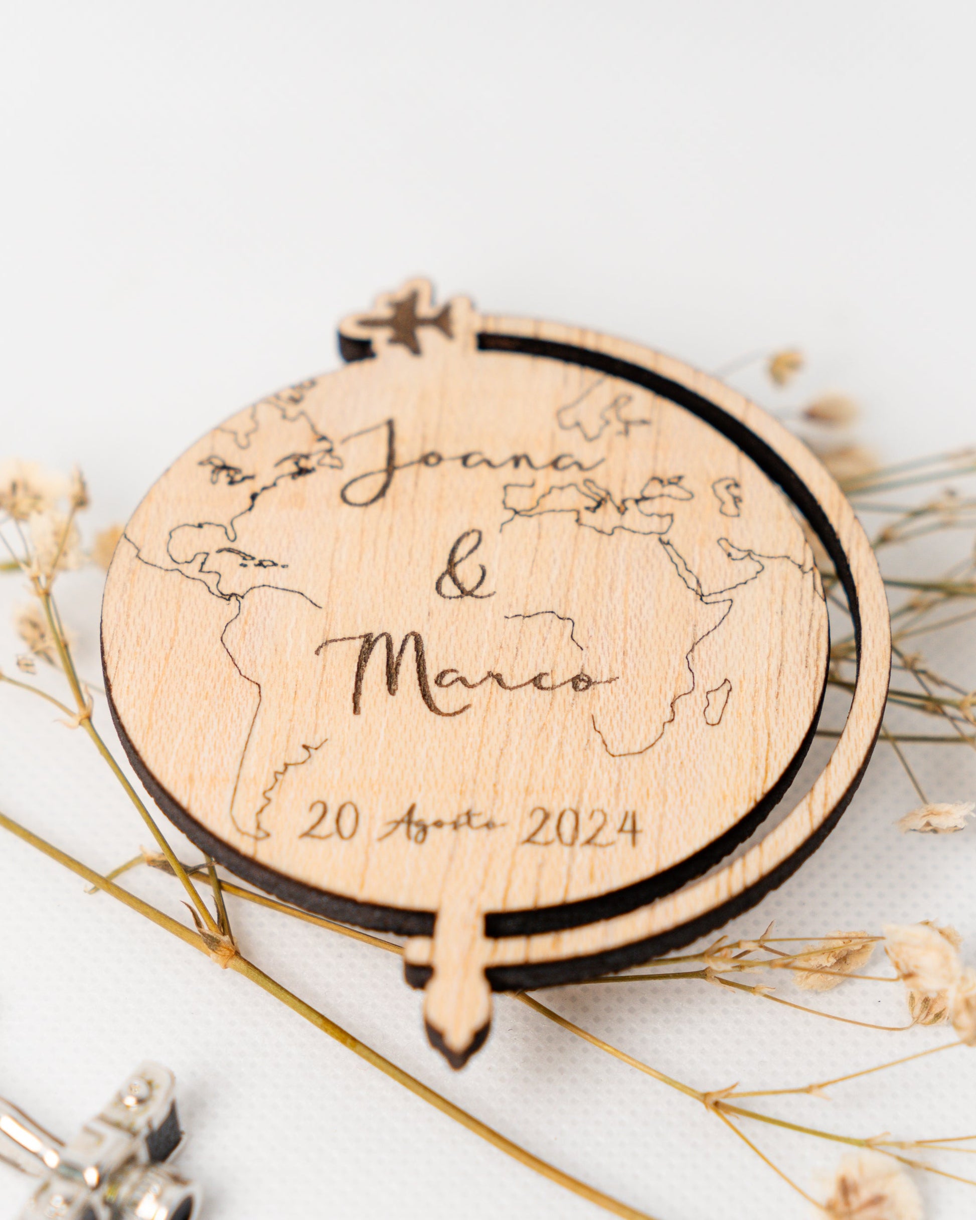 Celebra o amor e a aventura com este íman, pensado como uma lembrança única de casamento com tema de viagens. Perfeito para casais apaixonados por explorar o mundo, este íman é mais do que um simples acessório — é uma recordação duradoura de um dia inesquecível.