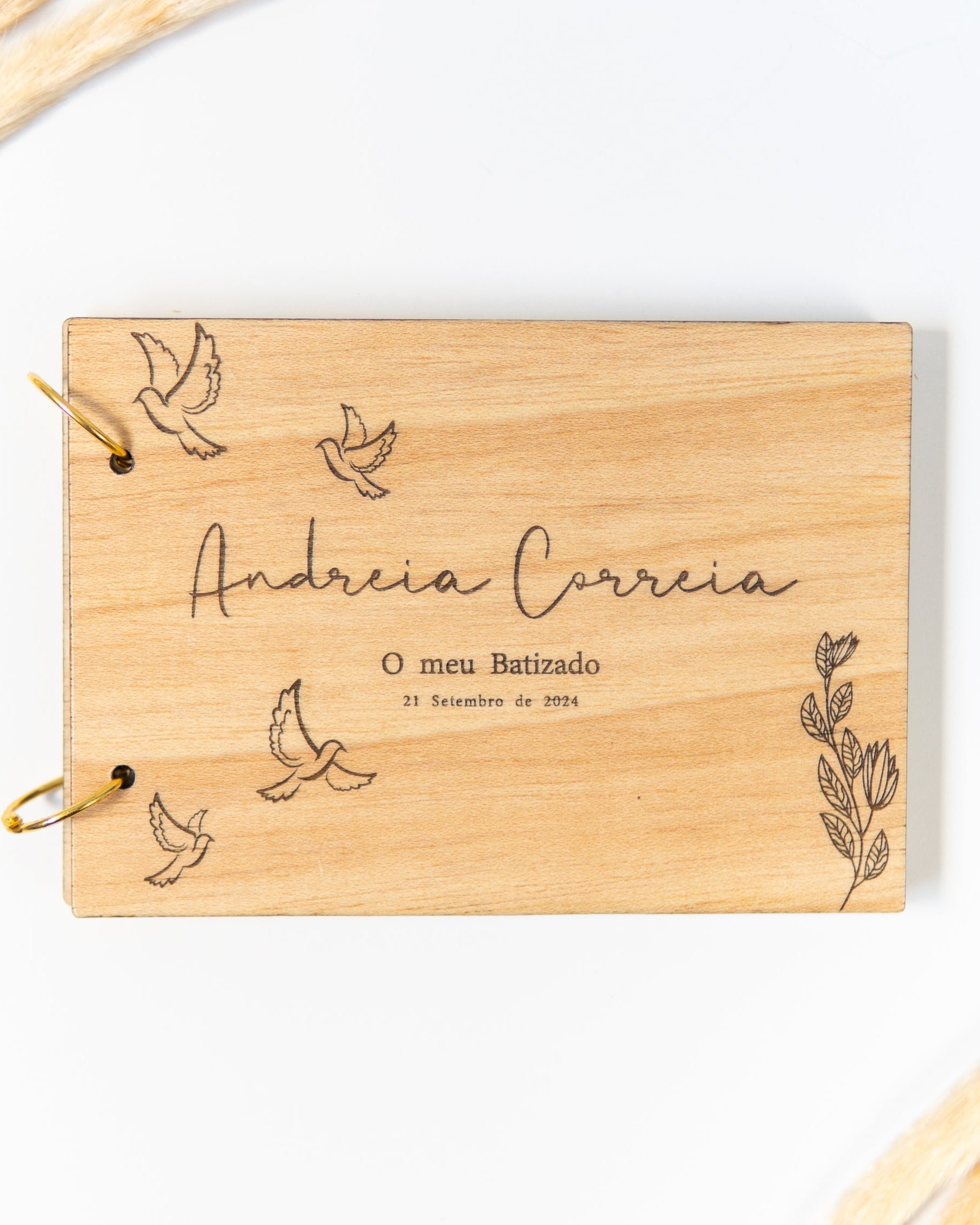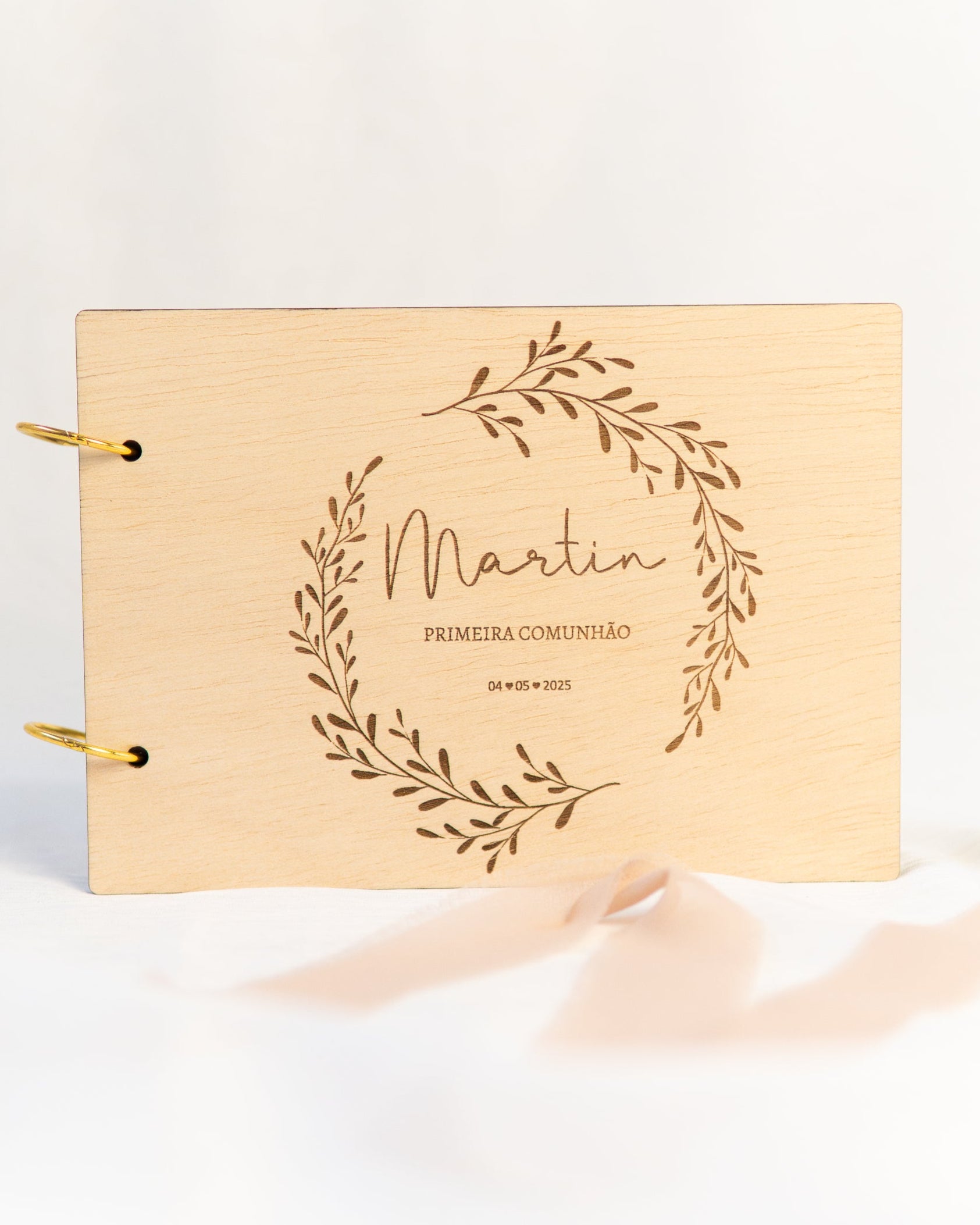 Um livro de honra para guardar mensagens, votos e memórias de um dia especial. Uma recordação intemporal escrita por quem mais importa.