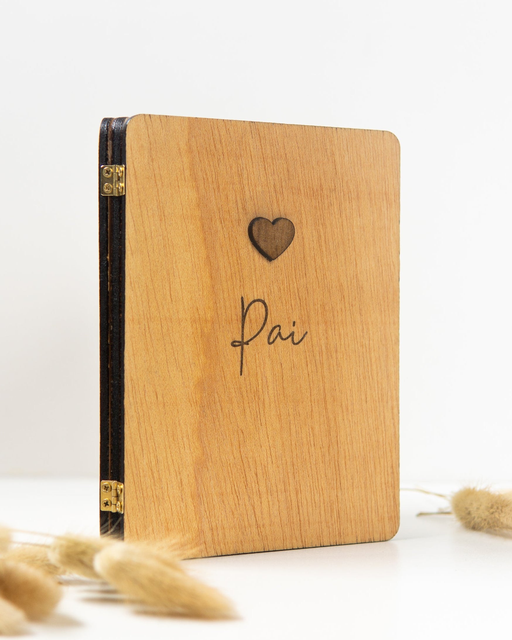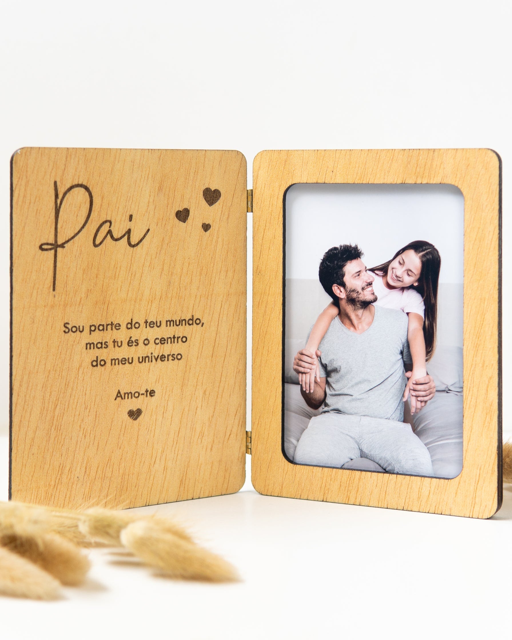 Uma moldura livro personalizada com a sua fotografia favorita, perfeita para o Dia do Pai. Celebre os momentos especiais com um presente único e cheio de carinho, criando uma recordação vai guardar para sempre!