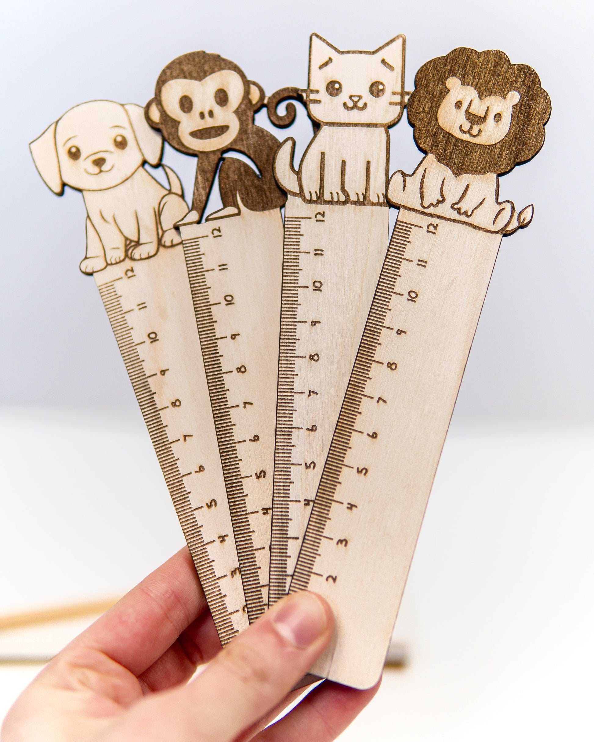 O seu tamanho compacto é ideal para estojos escolares, e o acabamento em madeira torna-a resistente, leve e ecológica. Disponível em vários formatos de animais, esta régua é uma excelente opção tanto para uso diário como para oferecer.