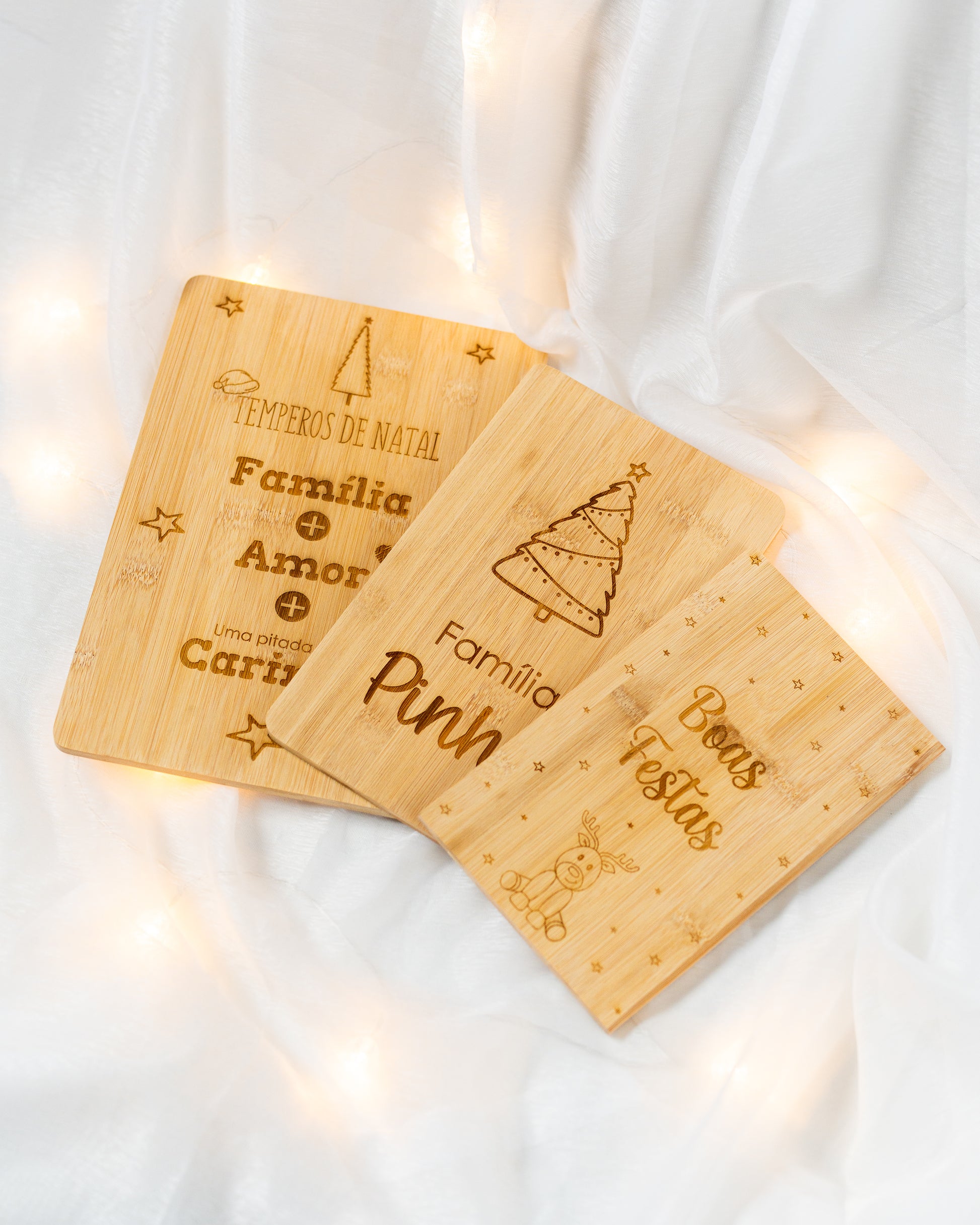 . Bambu natural - a tonalidade da gravação pode variar conforme o padrão de cada peça.